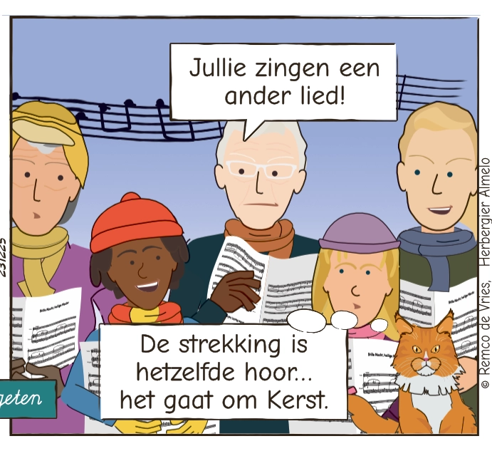 Tijdens het kerstzingen raakt Mies vrolijk in de war wanneer de liedjes door elkaar lopen. Terwijl iedereen ‘Stille Nacht’ inzet, zingt Mies vol overtuiging een ander kerstlied. In Herbergier Almelo zorgen zulke momenten voor een glimlach én warme herinneringen.