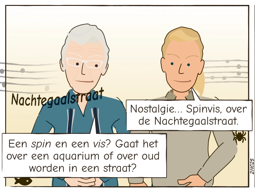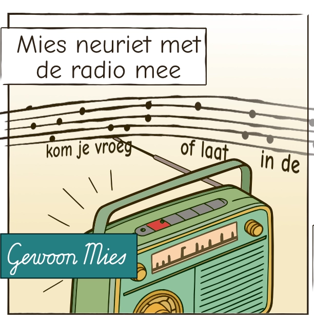 De melodie roept herinneringen op — sommige scherp, andere vaag als mist. Een stem zingt over de Nachtegaalstraat. Soms herkent Mies het liedje niet meteen, maar het gevoel herkent ze wél.