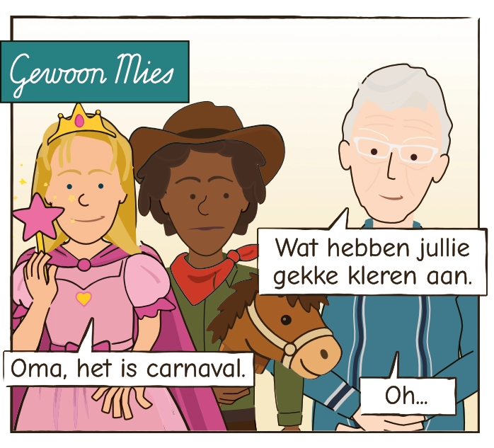 Carnaval brengt verkleedpartijen, verwarring en herinneringen. Voor Mies loopt dat soms door elkaar. Een stokpaard wordt een echt paard. En een naam… die is even weg.